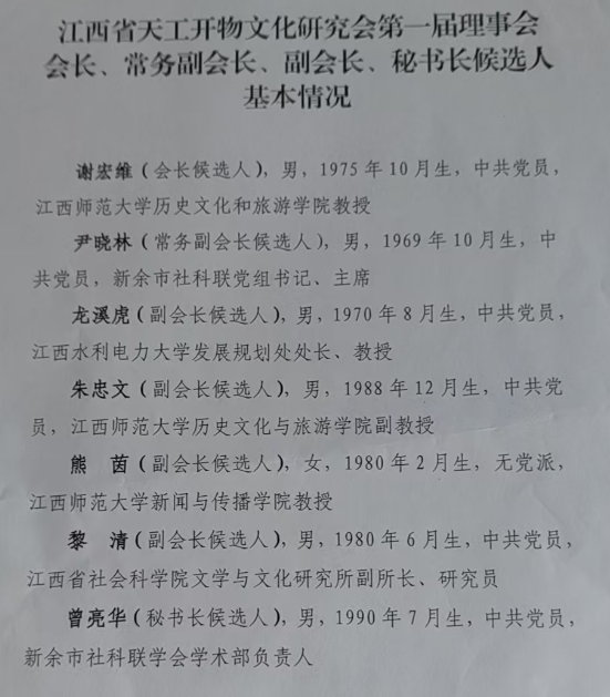2025年8月31日,江西天工开物文化研究会在新余市渝水区华侨豪生大酒店正式成立了。成立大会选举了理事会成员、会长、副会长、秘书长等领导成员。我院负责人当选为理事会理事。